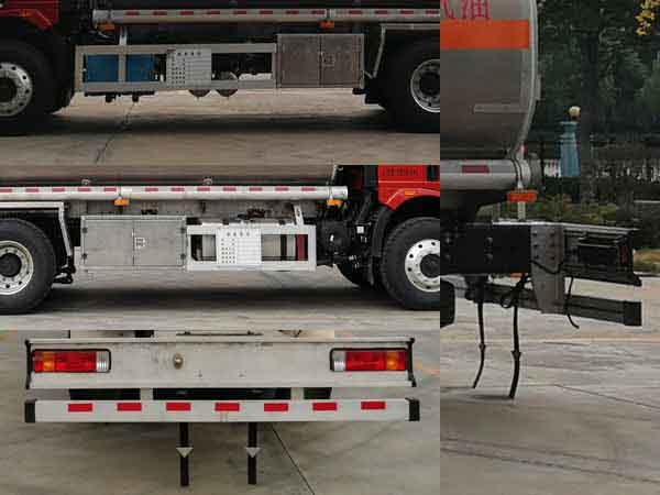 | 配置 | 1、該車適用于危險品運輸,運送危險貨物車輛類型為:FL型,類項號:3。運輸介質(zhì):汽油,密度:700千克/立方米。罐體有效容積24.5立方米,罐體外形尺寸(長×寬×高)(mm):7200×2400×1750。整車外形長與采用軸距/后懸對應(yīng)關(guān)系為(mm):10110/4600+1350/2760,10110/4800+1350/2560。2、側(cè)、后防護材料均為鋁合金,螺栓連接;后防護截面尺寸(寬×高)(mm)60×120,下邊緣離地高500mm。3、隨底盤選裝高頂駕駛室,選裝前圍和燈具。僅選用排氣管前置、限速裝置(限速79km/h)、前輪盤式制動及子午線輪胎的底盤;安裝帶有衛(wèi)星定位功能的行駛記錄儀;ABS系統(tǒng)生產(chǎn)廠家:長春瑞立科密汽車電子有限公司,型號:CM4XL。采用發(fā)動機與油耗值對應(yīng)關(guān)系為(L/100km):CA6DK1-32E6/37.47,CA6DK1-28E6/37.47。 該車后軸為采用空氣懸架. | ||