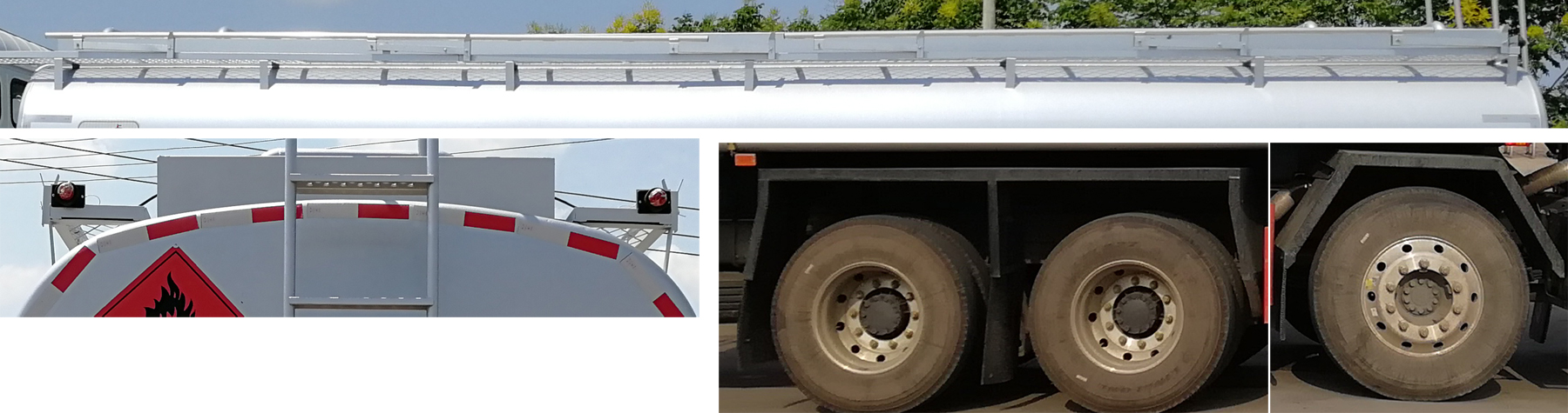 油漆: 灰色,貼反光條、反光帶,三個“易燃液體”標,安全告示。