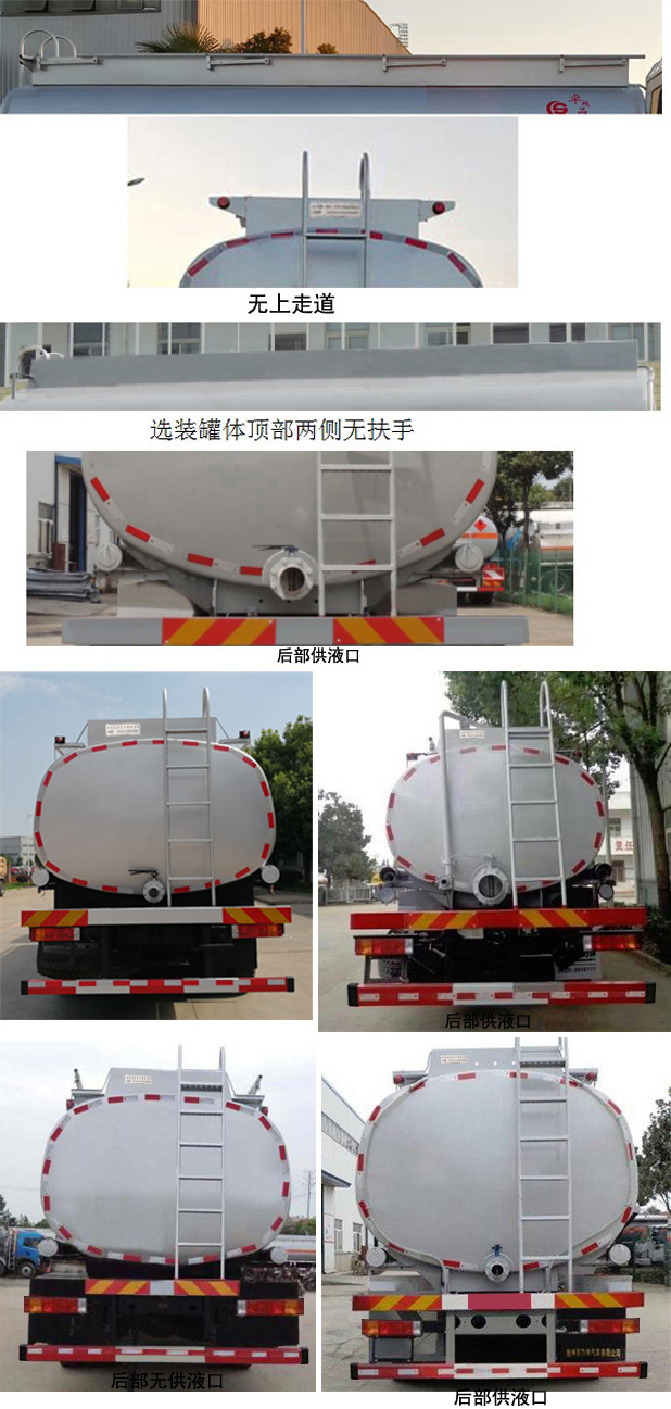 | 備注 | 隨底盤選裝同系列駕駛室,選裝進(jìn)氣口樣式。選裝罐體上部無(wú)上走道,有扶手或無(wú)扶手,后示廓燈架樣式;選裝罐體后部供液口閥門。 |