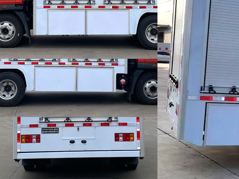| 其它: | 廂體頂部封閉,不可開啟。該車配備專用裝備架等專用設(shè)備, 主要用于裝載警用裝備及勘查、搶險救援裝備的專用車輛。側(cè)防護由車身結(jié)構(gòu)代替,后防護材料為Q235,焊接,后防護截面尺寸(mm)100×50,下邊緣離地高450mm。隨底盤選裝駕駛室,選裝鋁合金輪輞。ABS型號/生產(chǎn)企業(yè):XH-KQ4S4M-E01/廣州市西合汽車電子裝備有限公司,CM4XL-4S/4M/廣州瑞立科密汽車電子股份有限公司,VIE ABS-Ⅱ/浙江萬安科技股份有限公司。發(fā)動機與油耗值對應關(guān)系為(L/100km):WP2.3NQ130E61/10.18,D25TCIF1/11.06,WP2.5NQ160E61/10.11,WP2.5NQ150E61/10.11。選裝ETC。僅采用軸距3280mm。整備質(zhì)量包含冷卻液、潤滑劑、反光背心、三角警告牌、備胎、停車楔、隨車工具、專用裝備。貨廂重量(kg):2160;材質(zhì)/厚度:底板,碳鋼/2mm;側(cè)板,內(nèi)板鋁板/1.2mm,外板碳鋼/2mm。 |