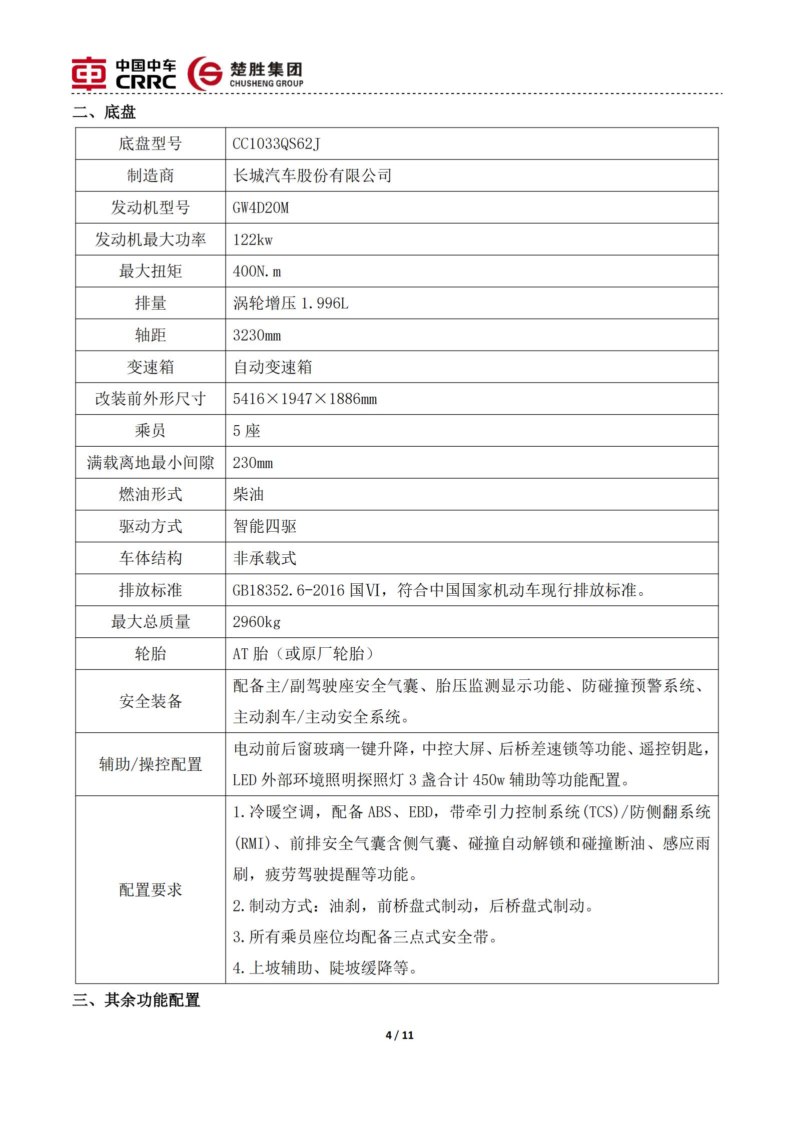 楚勝牌 CSC5030TXFQC10/CC6 型器材消防車