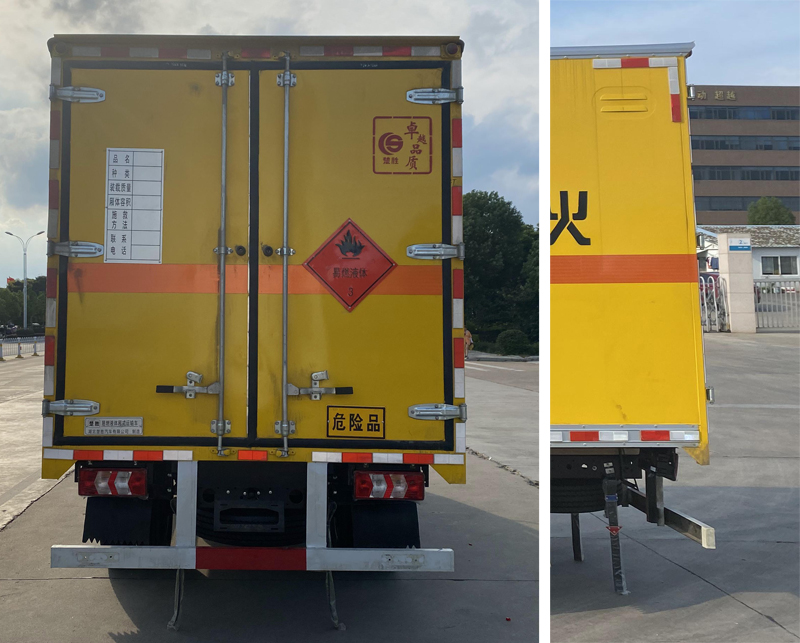 | 配置 | 1、該車適用于運輸危險品。廂體頂部封閉,不可開啟。類項號:2.1,2.2。2、側,后防護材料均為Q235,螺栓連接;后防護截面尺寸φ100mm,下邊緣離地高450mm。選裝后部無尾板,選裝無尾板時,后防護材料為Q235,焊接,截面尺寸100×50mm,下邊緣離地高450mm。3、廂體側面選裝開門型式及位置,選裝不帶側開門,選裝瓦楞板結構;廂體側面板選裝開百葉窗。安裝帶有衛(wèi)星定位功能的行駛記錄。轉向輪安裝輪胎防爆應急防護裝置。僅選用排氣管前置、限速裝置(限速80km/h)、前輪盤式制動及子午線輪胎的底盤..ABS型號/廠家為:CM4XL-4S/4M /廣州瑞立科密汽車電子股份有限公司,ABS型號/廠家:VIE ABS-Ⅱ/浙江萬安科技股份有限公司。發(fā)動機/油耗值(L/100Km)對應關系為:WP2.3NQ130E61/10.83。該車型可選裝ETC車載裝置。液壓升降尾板收起狀態(tài)水平長度為280mm,尾板質量為350kg。 | ||