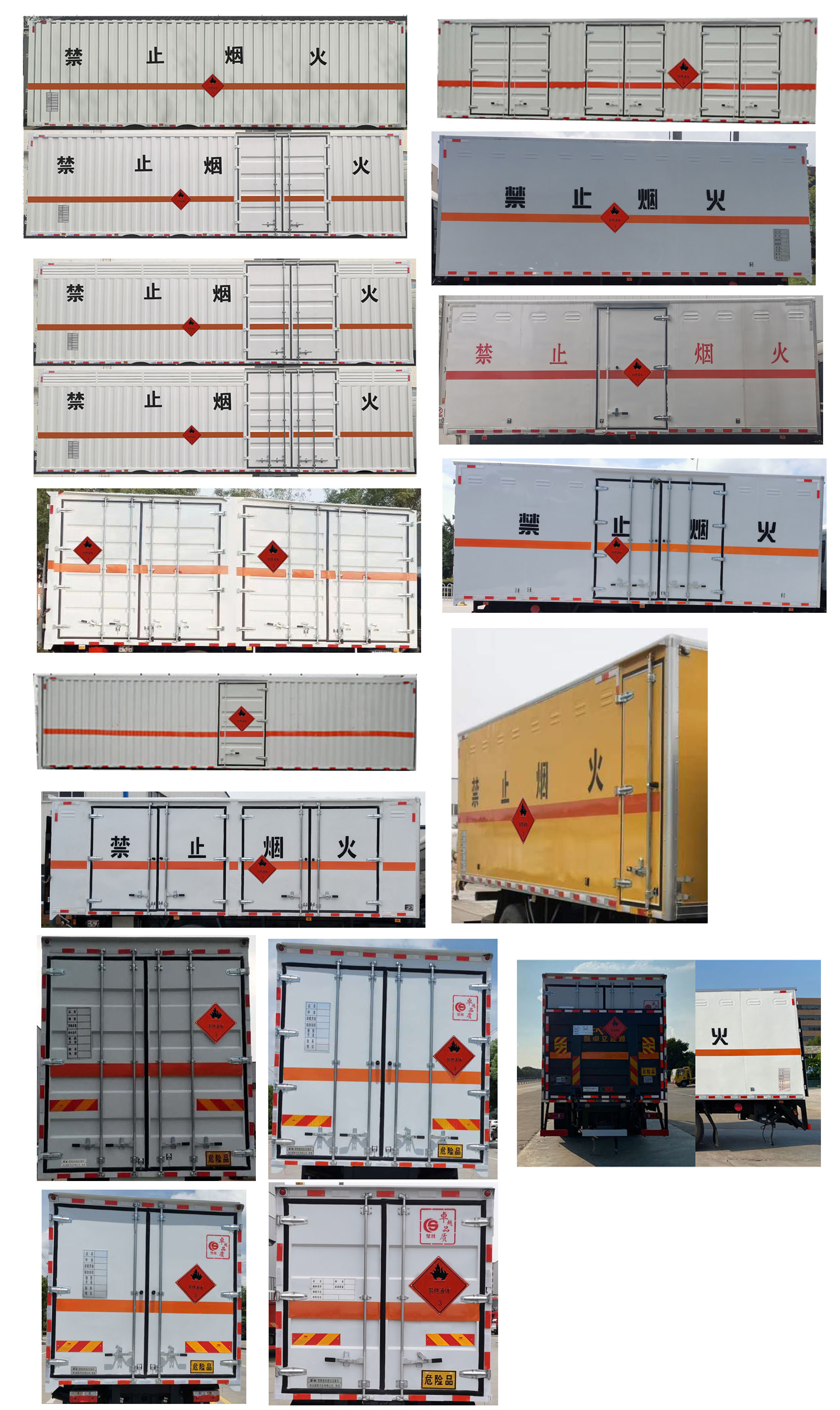 | 配置 | 1、該車適用于運(yùn)輸危險(xiǎn)品,運(yùn)輸具有**容器(瓶)包裝的物品,運(yùn)送危險(xiǎn)物品類項(xiàng)號(hào):3。廂體頂部封閉,不可開啟。2、側(cè)/后防護(hù)材料為Q235,側(cè)防護(hù)螺栓連接,后防護(hù)焊接,截面尺寸120×60mm,下邊緣離地高490mm。3、僅采用軸距(mm):4700,5000。隨底盤選裝駕駛室前面罩,選裝側(cè)窗玻璃,駕駛室頂部中間三個(gè)裝飾燈為選裝件,前霧燈為選裝件,駕駛室前臉擾流罩為選裝件。僅選用排氣管前置、限速裝置(限速80km/h)、前輪盤式制動(dòng)及子午線輪胎的底盤,安裝帶有衛(wèi)星定位功能的行駛記錄儀,EBS型號(hào)/生產(chǎn)廠家:EBS5/東科克諾爾商用車制動(dòng)系統(tǒng)(十堰)有限公司。采用的發(fā)動(dòng)機(jī)與油耗值(L/100Km)對(duì)應(yīng)關(guān)系為: B6.2NS6B210/26.5,DDi50E190-60/23.9。4、廂體側(cè)面選裝開門型式及位置,選裝不帶側(cè)開門,選裝瓦楞板結(jié)構(gòu);廂體側(cè)面板選裝開百葉窗。選裝尾板,尾板收起狀態(tài)水平長(zhǎng)度為290mm,尾板質(zhì)量為550kg。選裝ETC。 | ||