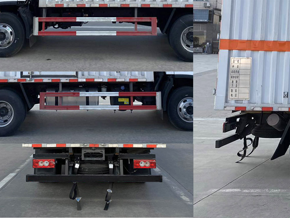 | 其它: | 1、該車適用于運(yùn)輸危險(xiǎn)品。廂體頂部封閉不可開啟。運(yùn)輸具有獨(dú)立容器(瓶)包裝的物品,運(yùn)送危險(xiǎn)物品類項(xiàng)號(hào):8。2、側(cè),后防護(hù)材料均為Q235,螺栓連接;后防護(hù)截面尺寸100×50mm,下邊緣離地高410mm。廂體側(cè)面選裝開門型式及位置,選裝不帶側(cè)開門,選裝瓦楞板結(jié)構(gòu);選裝百葉窗。3、隨底盤選裝排半駕駛室,選裝導(dǎo)流罩。僅選用排氣管前置、限速裝置(限速80km/h)、前輪盤式制動(dòng)及子午線輪胎的底盤;轉(zhuǎn)向輪裝備輪胎爆胎應(yīng)急防護(hù)裝置。安裝帶衛(wèi)星定位功能的行駛記錄儀。ABS系統(tǒng)型號(hào):ABS-VI.E;生產(chǎn)企業(yè):廣州瑞立科密汽車電子股份有限公司.ABS系統(tǒng)型號(hào):ABS-E;生產(chǎn)企業(yè):威伯科汽車控制系統(tǒng)(中國(guó))有限公司.ABS系統(tǒng)型號(hào):ABS8.8 ECU 24V,生產(chǎn)企業(yè):東科克諾爾商用車制動(dòng)系統(tǒng)(十堰)有限公司。發(fā)動(dòng)機(jī)/油耗值(L/100km)對(duì)應(yīng)關(guān)系為:CY4SK261/16.09,D30TCIF1/16.19,F2.8NS6B156/15.39,F3.8NS6B156/14.90??蛇x裝ETC車載裝置。 | ||