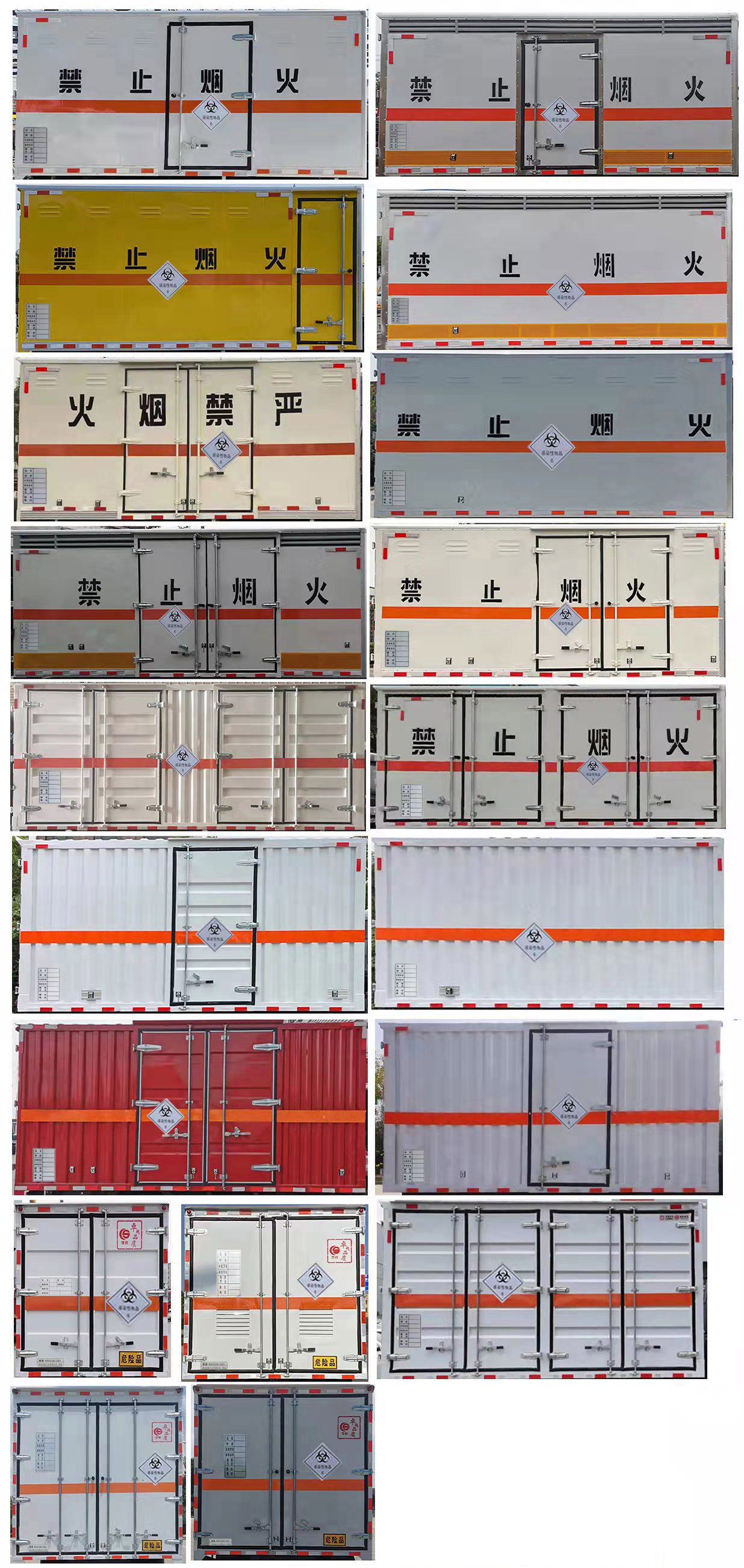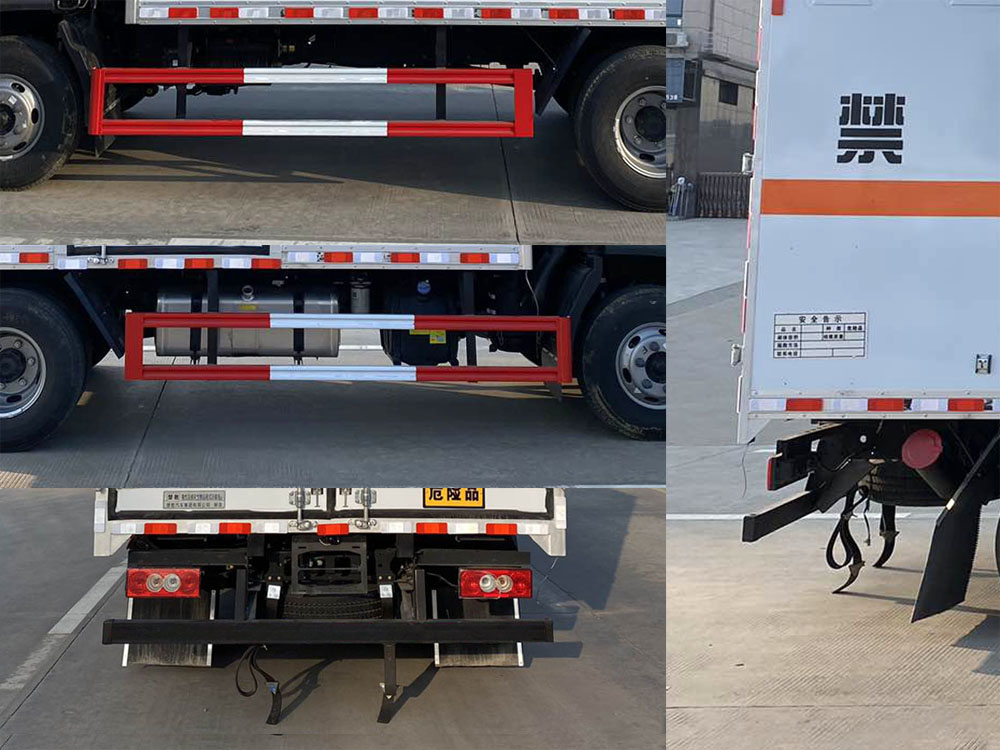 | 其它: | 1、該車適用于運(yùn)輸危險(xiǎn)品。廂體頂部封閉不可開(kāi)啟。運(yùn)輸具有獨(dú)立容器(瓶)包裝的物品,運(yùn)送危險(xiǎn)物品類項(xiàng)號(hào):6.1,6.2。2、側(cè),后防護(hù)材料均為Q235,螺栓連接;后防護(hù)截面尺寸100×50mm,下邊緣離地高410mm。廂體側(cè)面選裝開(kāi)門(mén)型式及位置,選裝不帶側(cè)開(kāi)門(mén),選裝瓦楞板結(jié)構(gòu);選裝百葉窗。3、隨底盤(pán)選裝排半駕駛室。僅選用排氣管前置、限速裝置(限速80km/h)、前輪盤(pán)式制動(dòng)及子午線輪胎的底盤(pán);轉(zhuǎn)向輪裝備輪胎爆胎應(yīng)急防護(hù)裝置。安裝帶衛(wèi)星定位功能的行駛記錄儀。ABS系統(tǒng)型號(hào):ABS-VI.E;生產(chǎn)企業(yè):廣州瑞立科密汽車電子股份有限公司;ABS系統(tǒng)型號(hào):ABS-E;生產(chǎn)企業(yè):威伯科汽車控制系統(tǒng)(中國(guó))有限公司;ABS系統(tǒng)型號(hào):ABS8.8 ECU 24V,生產(chǎn)企業(yè):東科克諾爾商用車制動(dòng)系統(tǒng)(十堰)有限公司;發(fā)動(dòng)機(jī)/油耗值(L/100km)對(duì)應(yīng)關(guān)系為:CY4SK261/16.09,D30TCIF1/16.19,F2.8NS6B156/15.39,F3.8NS6B156/14.90??蛇x裝ETC車載裝置。 | ||