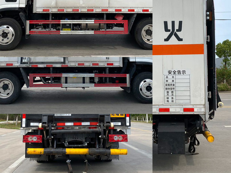 | 其它: | 1、該車為危險品運輸車,運輸具有獨立容器(瓶)包裝的物品,運送危險物品類項號:9。廂體頂部封閉,不可開啟。2、側(cè)、后防護材料均為Q235,螺栓連接,后防護截面尺寸(mm)Φ100,下邊緣離地高390mm。選裝后部無尾板時,后防護材料為Q235,螺栓連接,截面尺寸(mm)120×60,下邊緣離地高400mm。尾板收起狀態(tài)水平長度為280mm,尾板質(zhì)量為350kg。3、整備質(zhì)量含備胎,滅火器及隨車工具;貨廂重量為1050kg;材質(zhì)/厚度:復(fù)合板結(jié)構(gòu)廂體:底板材質(zhì)為Q235,厚度4mm,側(cè)板為外Q235+中間阻燃泡沫+內(nèi)純鋁板,厚度42mm;瓦楞板結(jié)構(gòu)廂體:底板材質(zhì)為Q235,厚度4mm,側(cè)板為Q235,厚度1.5mm。4、僅選用排氣管前置、限速裝置(限速80km/h)、前輪盤式制動及子午線輪胎的底盤,轉(zhuǎn)向輪安裝輪胎爆胎應(yīng)急防護裝置。安裝帶有衛(wèi)星定位功能的行駛記錄儀。ABS系統(tǒng)控制器型號/生產(chǎn)企業(yè): :YF8/武漢元豐汽車電控系統(tǒng)有限公司,ABS-E/威伯科汽車控制系統(tǒng)(中國)有限公司,ABS-VI·E/廣州瑞立科密汽車電子股份有限公司,YF9/武漢元豐汽車電控系統(tǒng)有限公司。發(fā)動機/油耗值(L/100km)對應(yīng)關(guān)系為: D20TCIF2/11.22,D25TCIF1/11.16, D20TCIF1/11.22。僅選用3360mm軸距,選裝ETC。廂體側(cè)面選裝開門型式及位置,選裝不帶側(cè)開門,選裝瓦楞板結(jié)構(gòu);廂體前后及側(cè)面選裝開百葉窗,選裝后尾板樣式,選裝無后尾板。 |