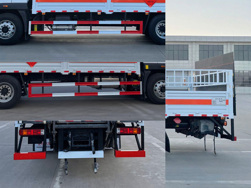 | 其它: | 1、該車適用于運(yùn)輸危險(xiǎn)品。運(yùn)輸具有獨(dú)立容器(瓶)包裝的物品,類項(xiàng)號(hào):2.1,2.2。2、側(cè),后防護(hù)材料均為Q235,側(cè)防護(hù)螺栓連接;后防護(hù)焊接,截面尺寸120×50mm,下邊緣離地高490mm。選裝后部無(wú)尾板時(shí),后防護(hù)材料為Q235,焊接,截面尺寸120×50mm,下邊緣離地高490mm。選裝欄板樣式。3、僅采用軸距(mm):4700,5150。隨底盤選裝駕駛室,選裝電瓶、尿素罐、儲(chǔ)氣筒、后處理位置。僅選用排氣管前置、限速裝置(限速80km/h)、前輪盤式制動(dòng)及子午線輪胎的底盤;安裝帶有衛(wèi)星定位功能的行駛記錄儀。該車轉(zhuǎn)向輪安裝輪胎爆胎應(yīng)急防護(hù)裝置,后軸采用空氣懸架。選裝ETC。EBS系統(tǒng)型號(hào)/生產(chǎn)廠家:EBS 5/克諾爾制動(dòng)系統(tǒng)(大連)有限公司,CM-EBS/廣州瑞立科密汽車電子股份有限公司。采用的發(fā)動(dòng)機(jī)與油耗值(L/100Km)對(duì)應(yīng)關(guān)系為:F4.5NS6B220/24.4,B6.2NS6B210/26。尾板收起狀態(tài)水平長(zhǎng)度為290mm,尾板質(zhì)量550kg。 | ||