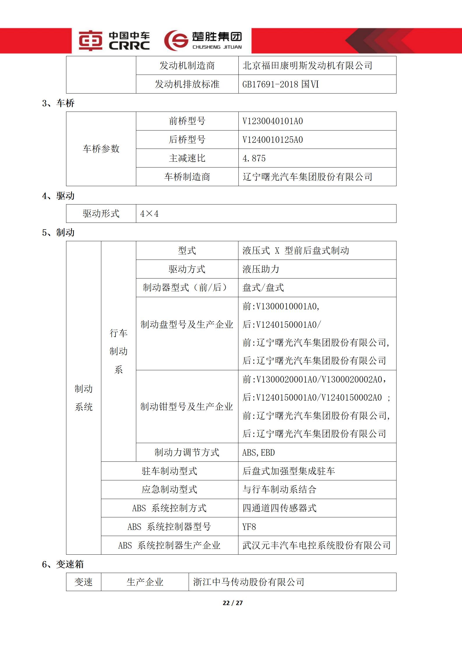楚勝牌CSC5040XYBBJ6型運兵車
