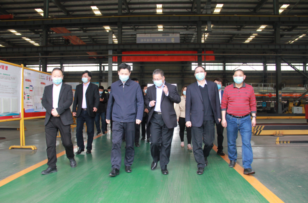 市領(lǐng)導(dǎo)一行參觀了公司的罐式車(chē)、自卸車(chē)、備料中心等生產(chǎn)車(chē)間和正在建設(shè)的創(chuàng)新工廠項(xiàng)目。
