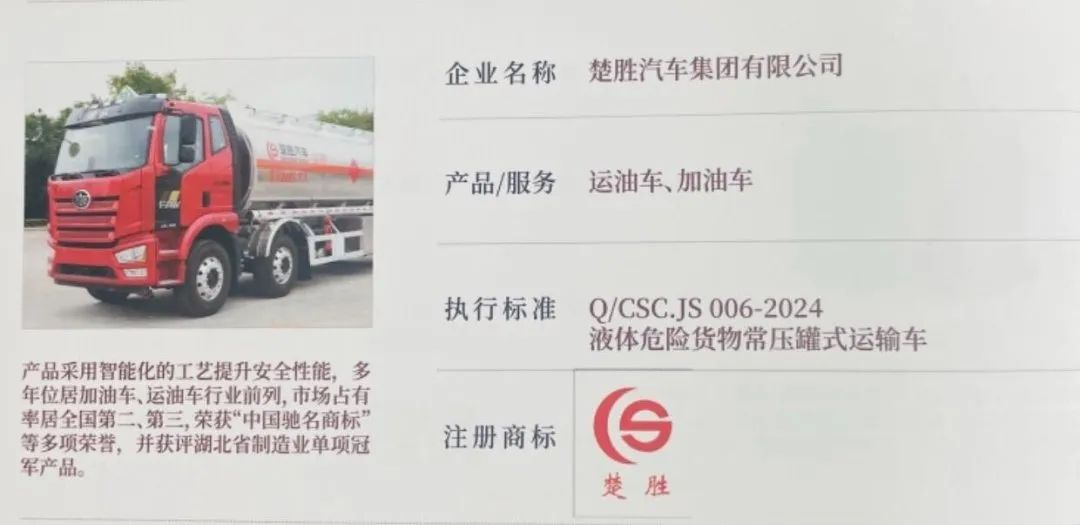 2025年4月9日,湖北省“湖北精品”認(rèn)定榜單正式發(fā)布!楚勝汽車集團自主研發(fā)的加油車、運油車系列產(chǎn)品,歷經(jīng)技術(shù)先進(jìn)性、質(zhì)量穩(wěn)定性、市場認(rèn)可度、品牌影響力四重嚴(yán)苛考核,從全省制造業(yè)優(yōu)品中脫穎而出,成功獲此省級質(zhì)量標(biāo)桿認(rèn)證!這一榮譽不僅彰顯了楚勝在專用車領(lǐng)域的技術(shù)制高點地位,更以權(quán)威背書印證了“中國質(zhì)造”的硬核實力!