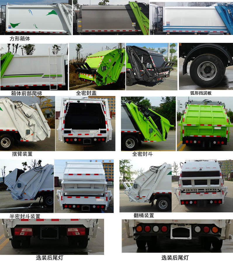 | 配置 | 1、該車主要專用裝置由箱體、壓縮系統(tǒng)組成,用于垃圾的收集與清運(yùn)。該車可選裝方形或弧形箱體,選裝全密封蓋裝置,選裝弧形擋泥板,選裝箱體前部爬梯,選裝后部工作裝置。選裝工作裝置時,外形長(mm)/后伸(mm)/整備質(zhì)量(kg)對應(yīng)關(guān)系:①無上料裝置: 6570/-/5830;②擺臂裝置: 6730/160/6100;③全密封斗裝置: 6770/200/6100;④翻桶裝置,半密封斗裝置:6970/400/6100。2、側(cè)防護(hù)采用冷彎型鋼/Q235,螺栓連接;后防護(hù)由專用裝置替代,下邊緣離地高500mm。3、隨底盤選裝黑色輪輞。ABS系統(tǒng)型號: VIE ABS-II,ABS系統(tǒng)生產(chǎn)廠家: 浙江萬安科技股份有限公司。發(fā)動機(jī)JX4D306H的油耗值為14.5L/100km。 | ||