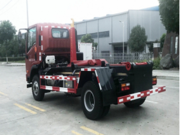 ★勾臂垃圾車(chē)的系統(tǒng)由拉臂回路﹑滑臂回路、車(chē)廂回路、鎖緊回路和支撐回路組成,集裝載、運(yùn)輸、自卸于一身,無(wú)需**設(shè)備。